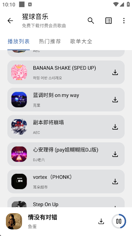 3、支持离线下载功能,歌迷可以在没有网络连接的情况下尽情的听歌。