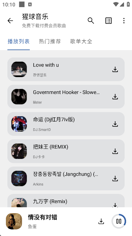 5、进入后选择要下载的音乐点右侧的下载按钮