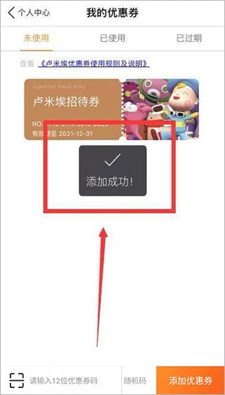 5、扫描结束后,选择【添加优惠券】,就可以将电影券兑换到app上了。