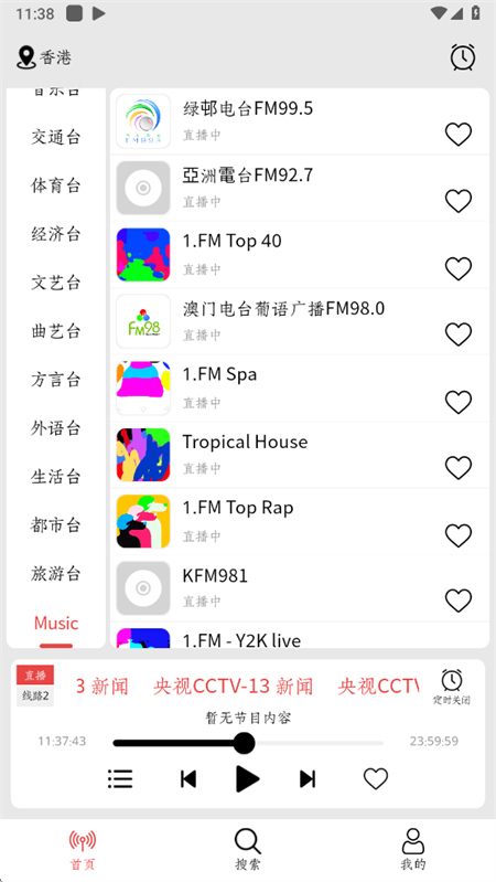 3、支持后台无线电播放,即使在屏幕锁定或切换到其他应用程序时,也能确保正常播放广播电台。