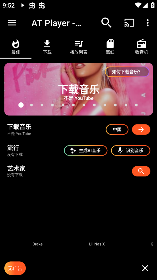 v20250518AT Player是一款手机端十分专业值得推荐的国际音乐播放器App,平台内拥有很丰富很全面的音乐资源,这里你可以通过分类或者搜索来轻松获取歌曲欣赏,AT Player中拥有统计、下载、播放列表、离线、收音机等分类,超多好听的歌曲等你来解锁欣赏,一定不要错过了。
