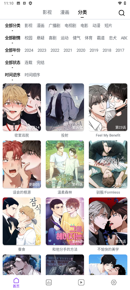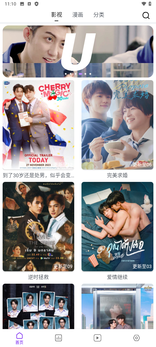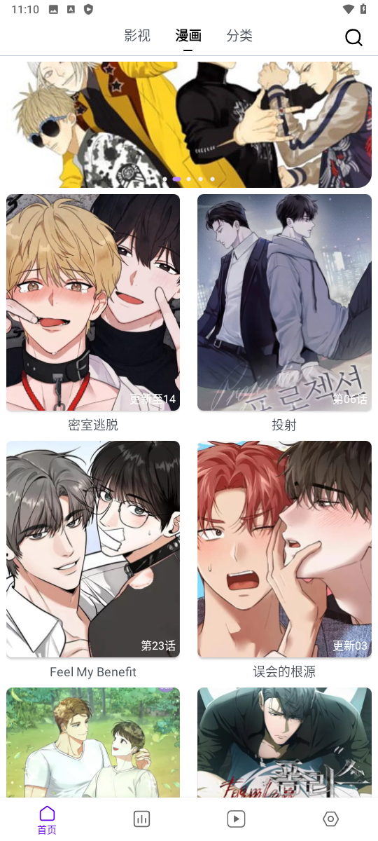 2、进入首页,可以看到上方的【影视】、【漫画】等分区