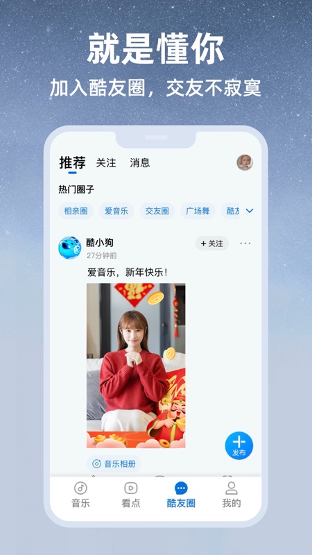 3、【中老年生活社区】音乐交友、美食分享、观点讨论,茫茫人海,在酷友圈找到知音不寂寞;