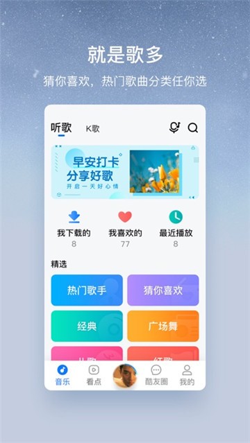 v2.4.8酷狗大字版是一款为各个中老年人打造的音乐播放软件,软件拥有丰富的音乐资源,独特的超大歌词,为用户带来优质听歌服务,还有各个任务可以让用户完成,每日听歌就能领取豪华红包,感受不一样的听歌乐趣,有兴趣的用户快下载体验吧。