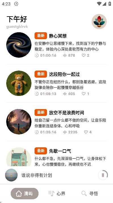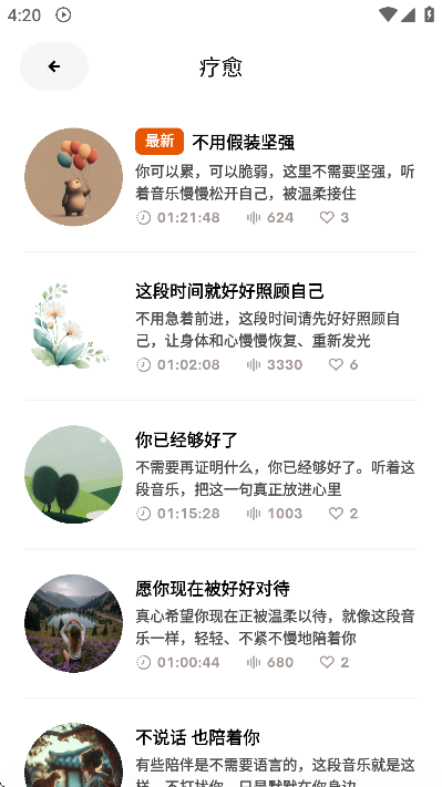 2、结合前沿音频技术与AI个性化推荐系统,为用户提供科学、温暖且可持续的自我疗愈体验。