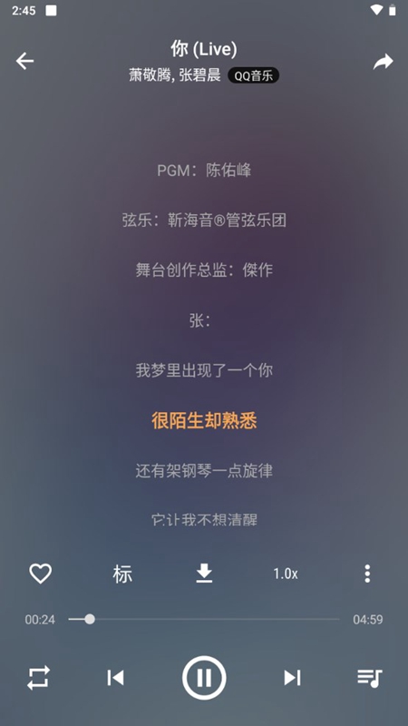 3、进入播放界面后点击下载按键,即可将该歌曲下载。