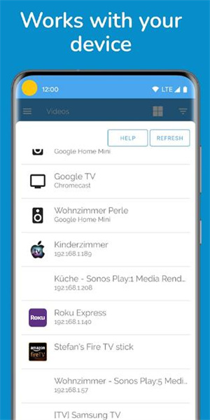 1、点击图中的图标按钮,可以选择您的流媒体设备,例如Chromecast,Amazon Fire TV/Stick 或智能电视。