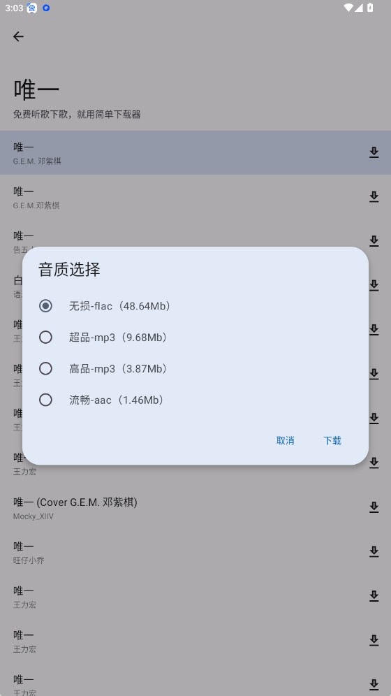 简单下载器是一款好用的歌曲下载软件,你可以在这里找到很多精品的音乐资源,现在的热门歌曲都能够在这里下载,按照你喜欢的歌曲名称和歌手等信息进行搜索吧!平台支持线上听歌和下载离线播放两种模式,超多的音乐风格任你选择,喜欢的音乐的用户快来这里下载吧!