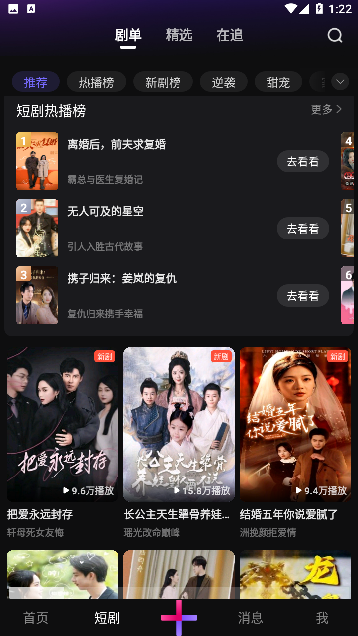 软件内还有很多精彩的短剧,热门排行榜实时更新,你可以在这里看到最热门的短剧,逆袭、甜宠、穿越、虐恋、重生等超多的题材应有尽有,超多的题材类型满足你的需求。软件内还有全面的评论、点赞、转发等诸多的功能,你可以与其他人一起分享交流,非常的有趣,感兴趣的小伙伴快来下载吧!