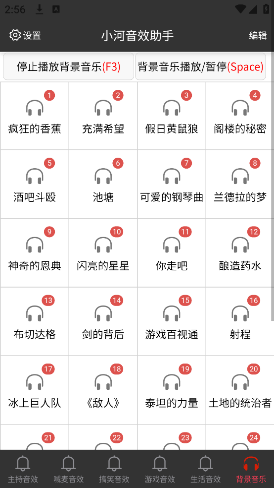 2、音效种类多样,细致划分为搞笑音效、游戏音效、生活音效、背景音乐、主持音效、喊麦音效等,方便用户按需查找。