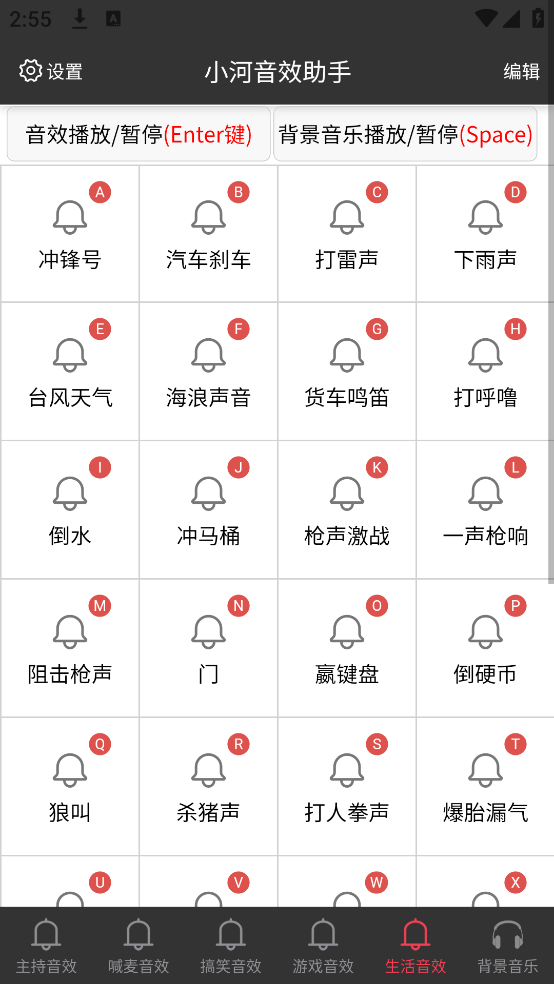 2、快捷键操作,支持手机连接键盘,使用键盘快捷键播放音效