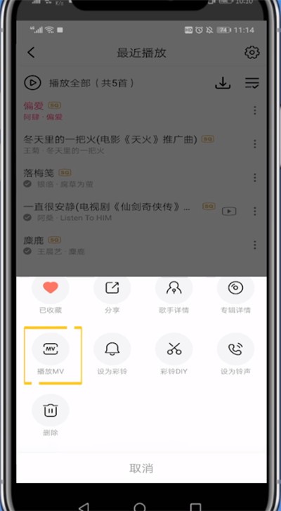 3、点击播放MV
