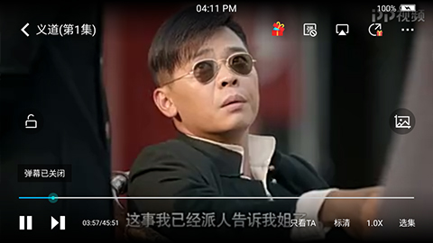 2、接着在横屏播放页面中点击任意位置,这时在播放页面顶部右侧会出现一个橙色的弹幕图标(下图红色箭头所指)橙色代表弹幕是开启状态,用户点击这个图标就会关闭弹幕