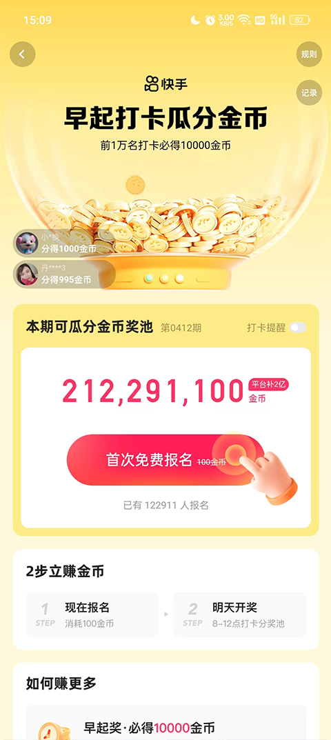 1、不管你是回归的老用户还是在快手赚钱版红包版新注册的新用户,都会收到官方赠予的开门红包。