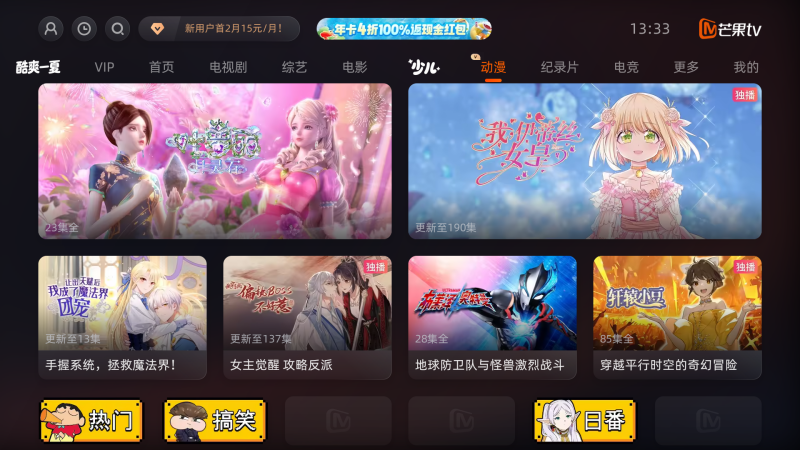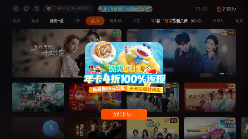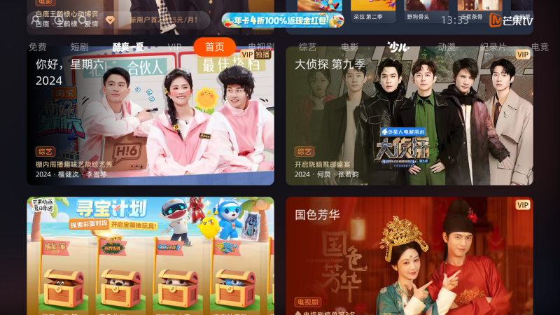 v7.0.801.383.3芒果TV电视版是一款适用于电视端的国内最大视频播放器之一,这里你可以不断的选择电视剧、电影、动漫、体育赛事等视频内容,各种热播的电视剧、综艺节目都是第一时间为你解锁,很多资源都是可以免费观看的,你也可以通过缓存来下载各种视频资源,在没网的时候也可以轻松观看。