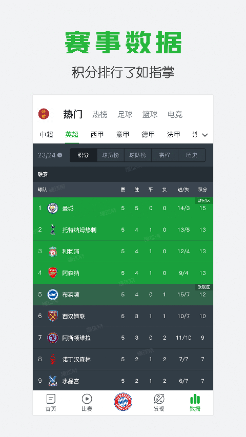 【数据】联赛/杯赛积分,球员榜、球队榜实时更新,赛程一目了然
