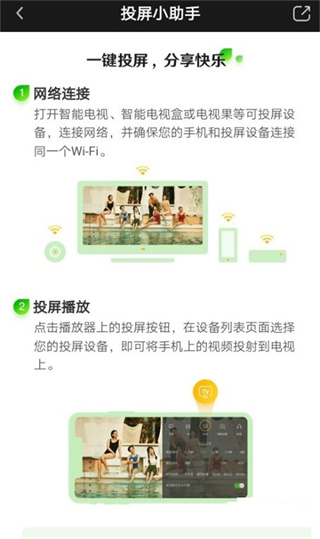 4、同时在三个点打开的功能菜单中还有投屏功能,我们点击使用。接下来就会跳转到投屏小助手的界面,我们可以根据文字提示来使用。