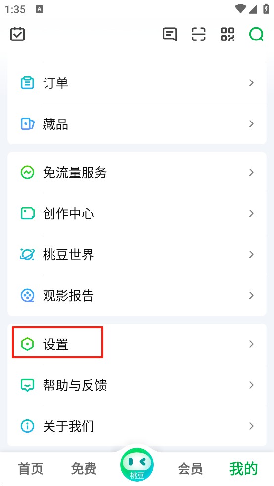 2、进入【我的】界面之后,下拉找到【设置】并点击
