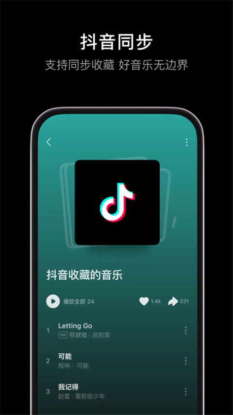 2、【抖音同步】支持抖音音乐收藏同步,听歌更方便。