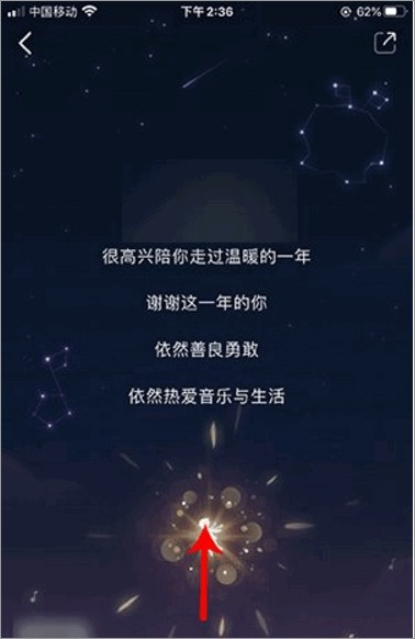 2、进入酷狗音乐后,点击右边的浮动图标“年度报告已抵达”。