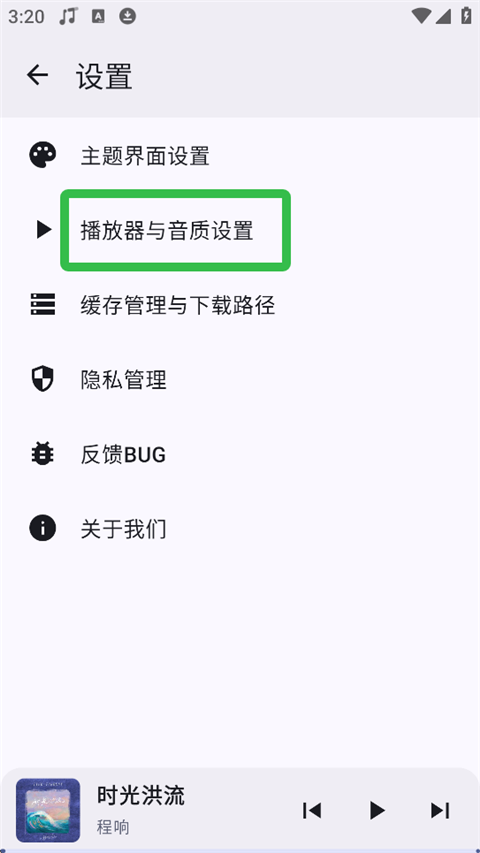 2、点击【播放器与音质设置】。