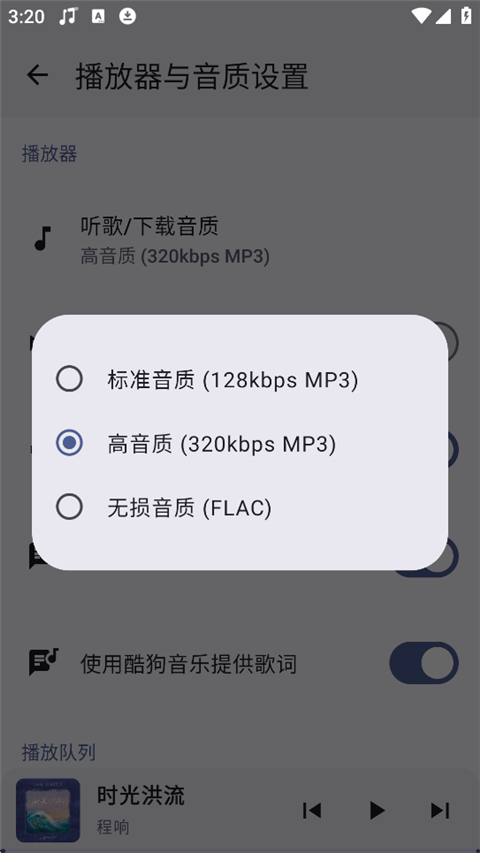 4、选择需要的音质即可。
