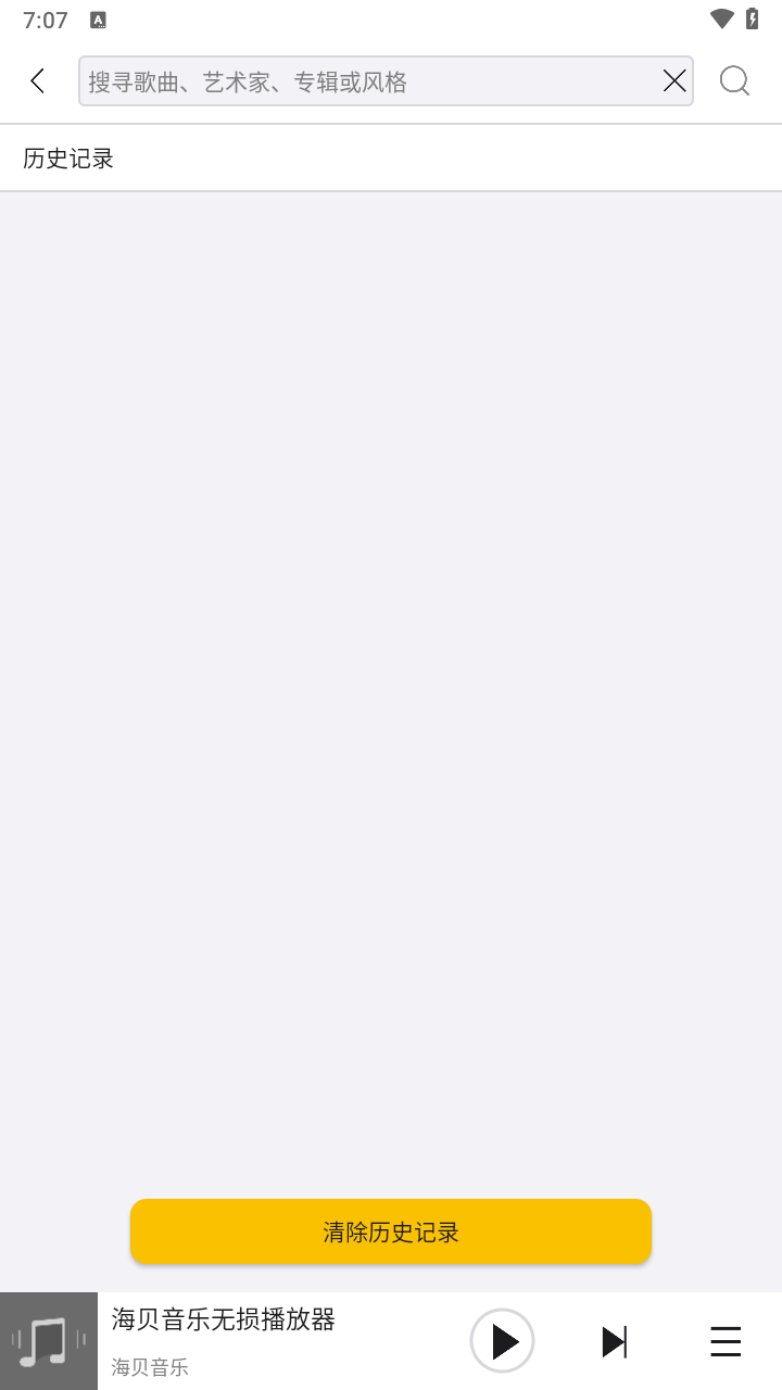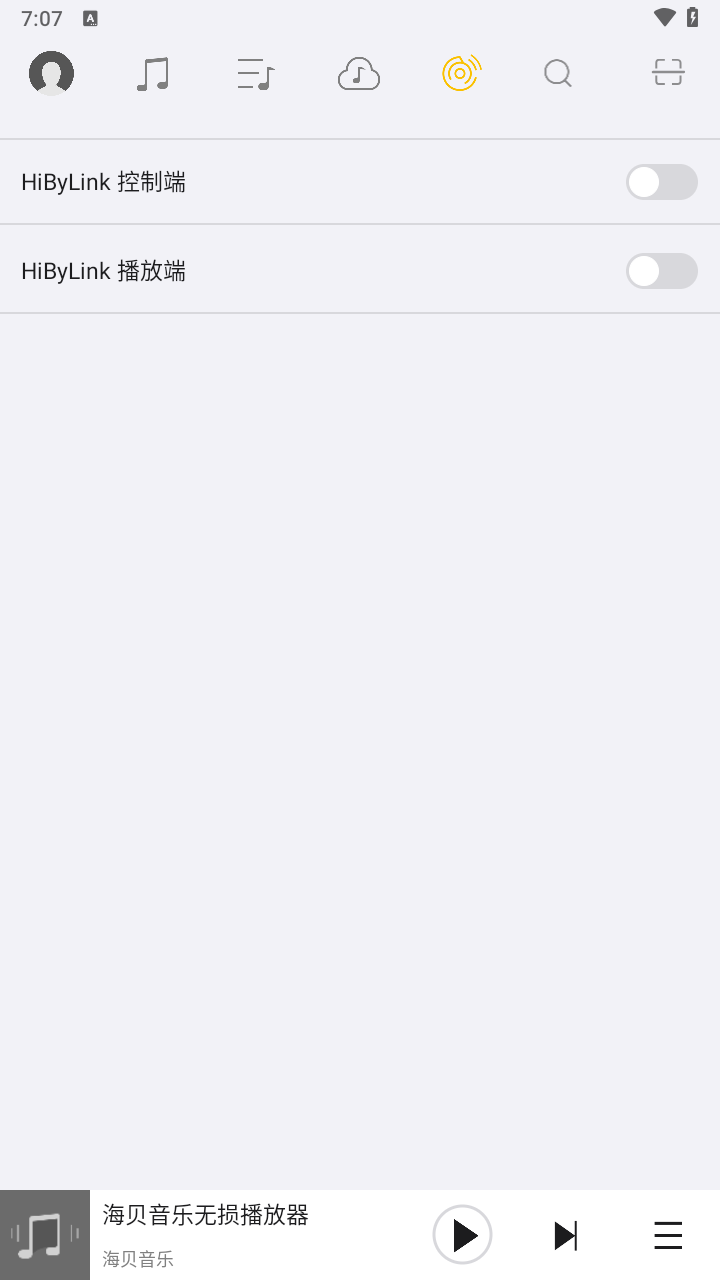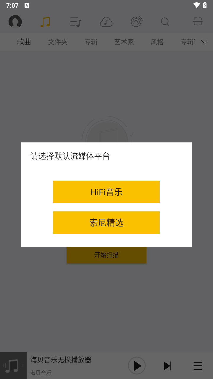 1、海贝音乐app官方版作为一款本地音乐播放器,是不提供在线搜索歌曲功能的,用户们初次进入软件则需要点击“开始扫描”按钮进行扫描;