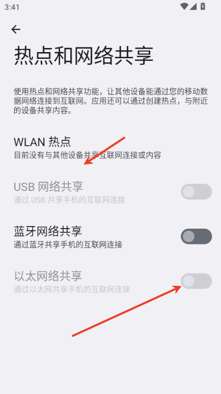 3、无论何种方式,都需要开启热点和共享网络完成连接操作。