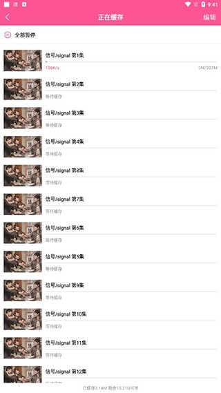 4、在我的,离线缓存功能中就可以查看缓存进度。