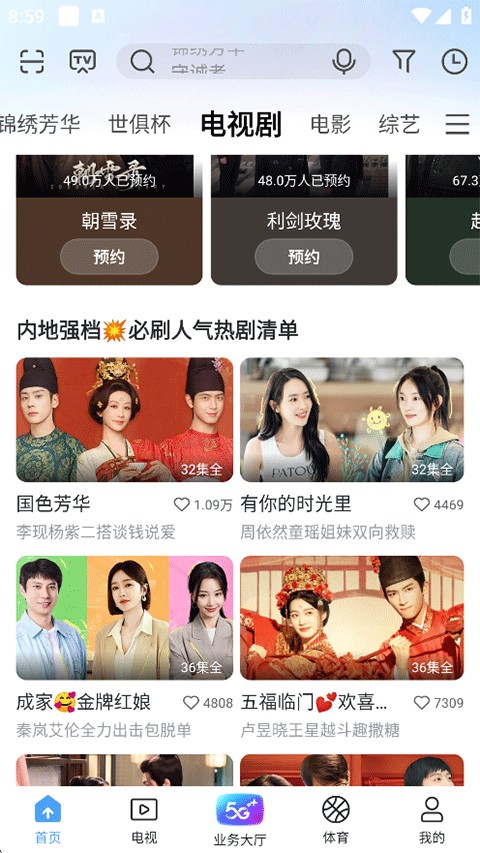 1、打开咪咕视频爱看版,在首页搜索你感兴趣的电视剧电影内容;