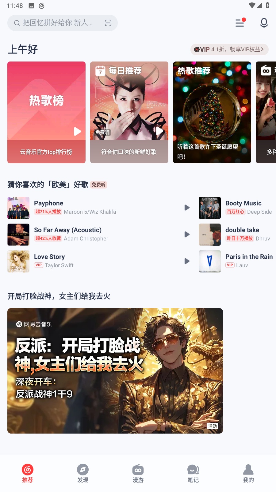 2、个性推荐:广受好评的算法,自动推荐你感兴趣的新歌,比你更懂你。