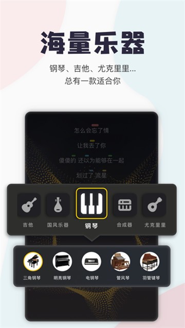 1、首创弹唱新玩法,不懂乐器也能自弹自唱,大大降低音乐门槛。
