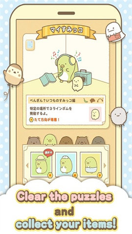 1、突破传统,以萌趣的日本超人气角落生物为匹配对象,匹配四个及以上相同动物来解救它们,每关步数有限,考验策略思维。