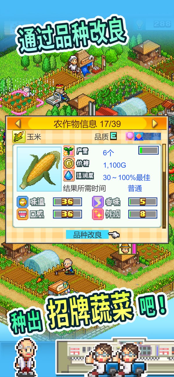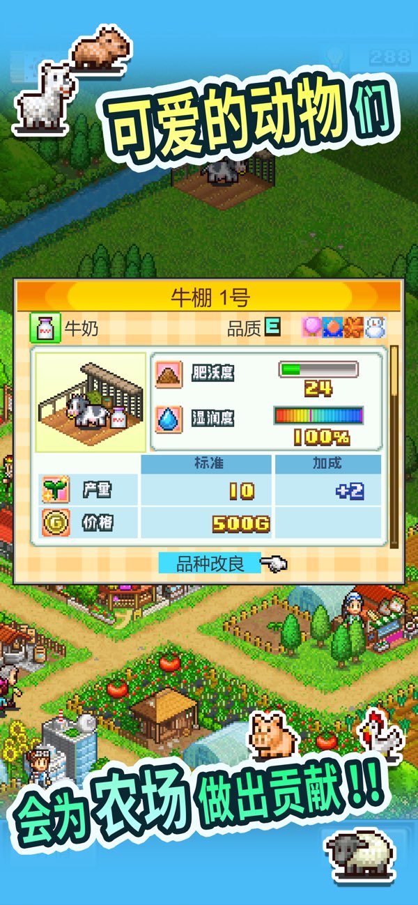 v2.2.9喜欢开罗游戏的小伙伴一定不要错过这款晴空农场物语啊,这是一款以农场经营为核心玩法的手游,继承了开罗游戏一贯的精致像素画风。玩家将经营一家属于自己的农场,不仅要想办法提高作物的产量,也要通过品种改良,不断提升作物的品质。你的目标就是在蔬菜大赛中依靠自己种植的作物拿下冠军,让全世界的人民都能吃上物美价廉的优质蔬菜。