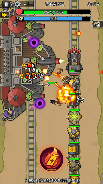 1、游戏提供了多种不同的炮塔,玩家可以将它们放置在火车上进行闯关。每种武器炮塔都有其独特的功能,为玩家带来不同的闯关体验。