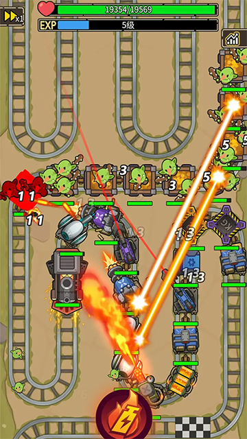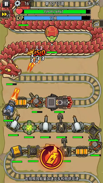 v1.0.3我头很铁是一款极具创意非常有趣的策略塔防类游戏。在”我头很铁“这款游戏中你将化身成为一位驾驶着一辆火车的车站,在你的前方有着各种各样的怪物想要来摧毁你的火车。你需要不断的升级你的火车并在车厢上方加装各种攻击炮台抵御朝你袭来的怪物,每次升级火车都会增加一个全新的车厢其血量也会增加不至于轻易被怪物摧毁。
