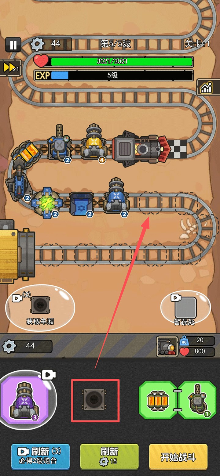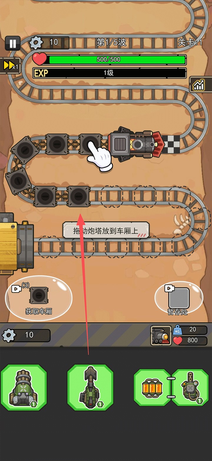 1、进入关卡后,将底部的炮塔拖动到车厢上进行部署。