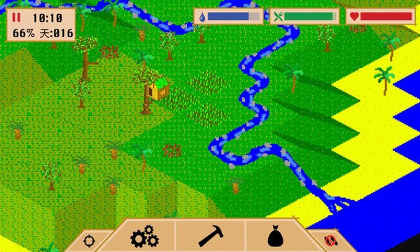 1、游戏画面复古,结构简单,但基本的荒岛生存玩法都比较有趣:探索、采集、简单的组装道具;