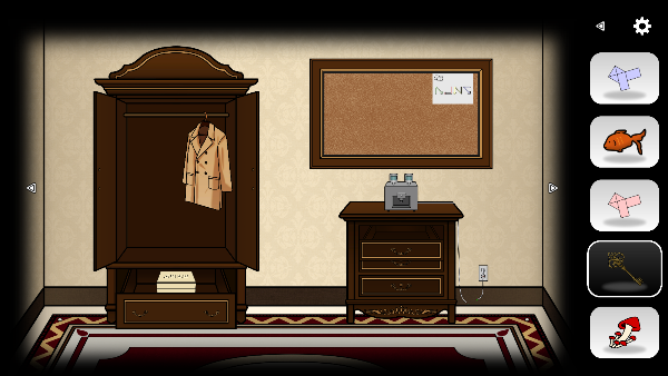 玩家获取到钥匙之后可以到第四个房间,开启第二个锁着的柜子,获得锤子,锤子可以到第一个房间把地毯的钉子拔出来获得新的线索。