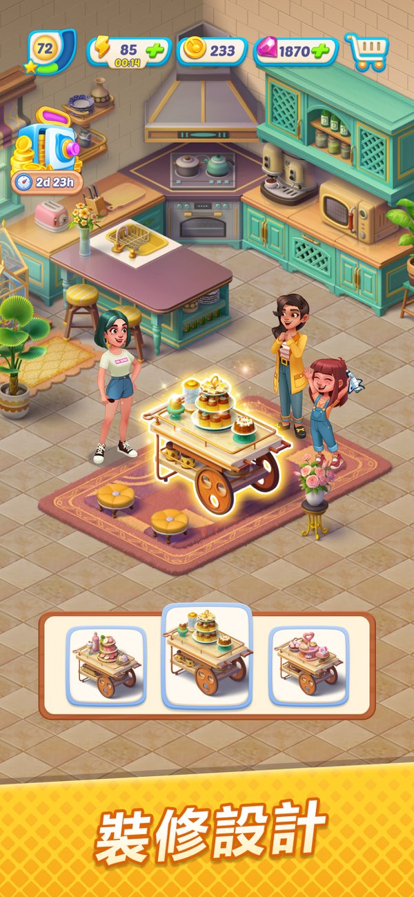 v3.75.0绯闻港口是一款非常有趣的休闲模拟经营类游戏,该游戏采用了Q版卡通的游戏画风,包含了非常丰富的游戏内容。在游戏中,玩家将扮演一位破产了的倒霉女性,但是这小小的挫折并没有击垮你,你将在绝境中触底反弹。玩家将经营一家餐厅,通过三消玩法与合成玩法获取丰富的奖励,装饰自己的餐厅,增加更多的菜品,一步步走向成功吧。