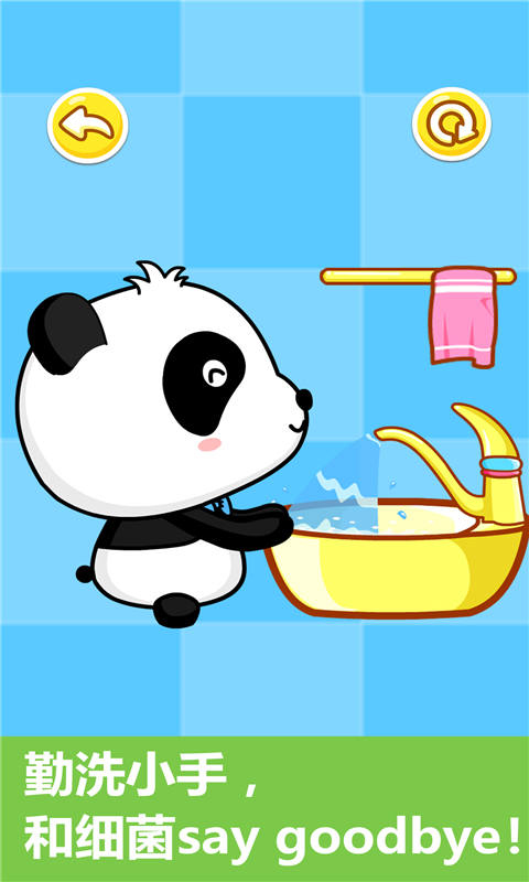 1、进入刷牙的场景,根据指示给熊猫宝宝完成刷牙,完成后查看熊猫宝宝的牙齿;