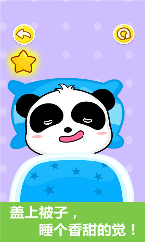 6、晚上要睡觉,到了晚上就可以上床睡觉了,给熊猫宝宝盖好被子;