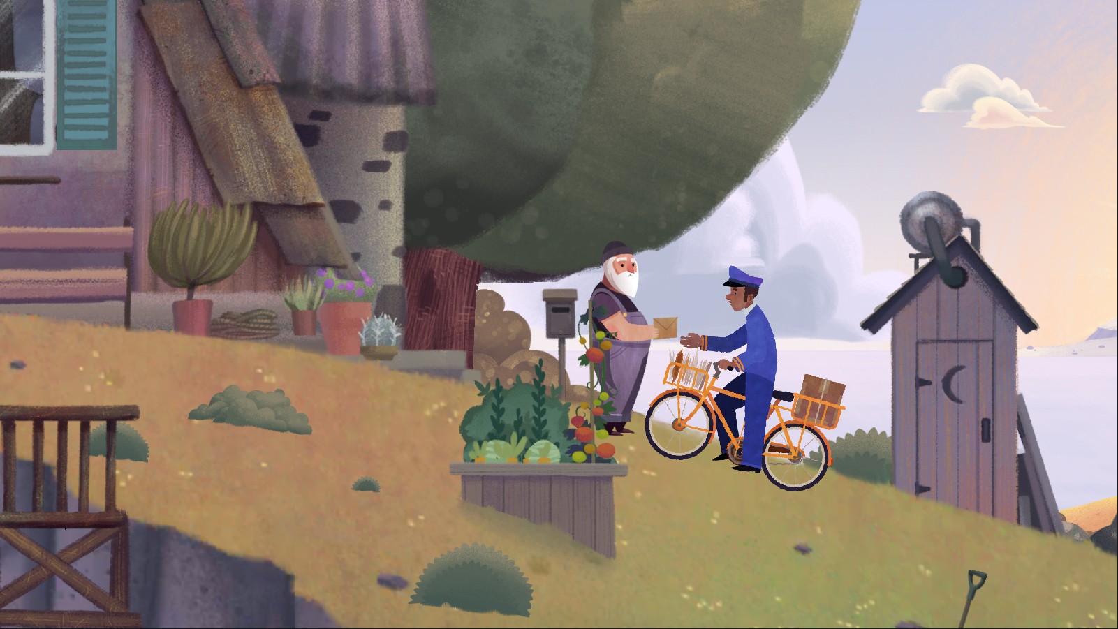 1、触发剧情:点击屏幕,过一会会有邮递员来送信,老人看完信以后就默默地整理行装,开始了回忆之旅。