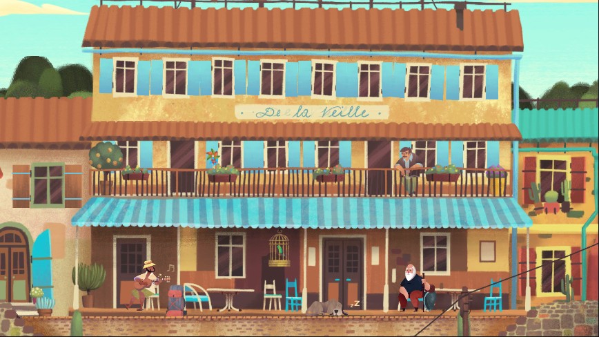 4、触发剧情:点击房檐上的情侣,情侣会做一些互动,然后老人就开始回忆