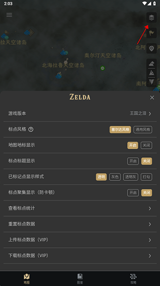 2、然后在弹出的界面选择你需要寻找的各个道具点和地标、如龙之泪、清洁挑战、试炼神庙等等;