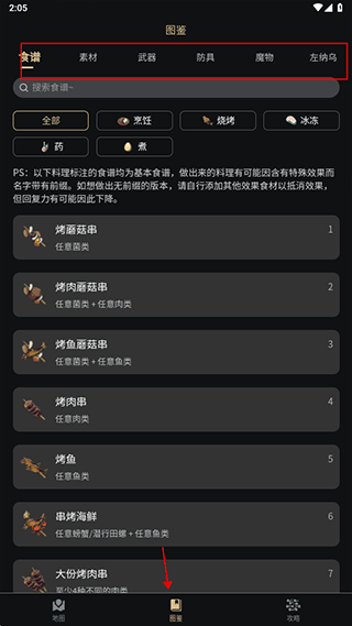 5、如果你不清楚塞尔达各种资源的话,可以点击图鉴,进行搜索查询,非常方便;