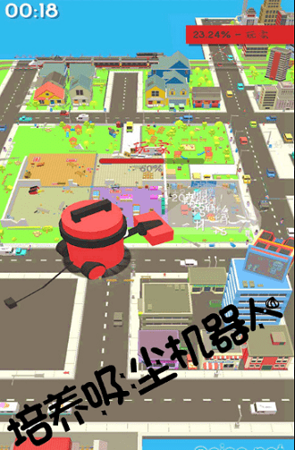 1、玩家需要灵活操控吸尘器在城市中穿梭,通过吸收各种物品来提升能力。