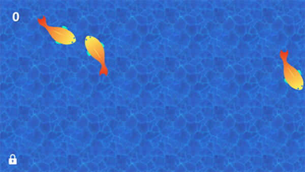 4、点击到小金鱼就会消失然后重新出现新的,左上角会有点击数。