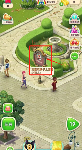 1、打开手机上的游戏,在游戏中找到自己的集市牌;