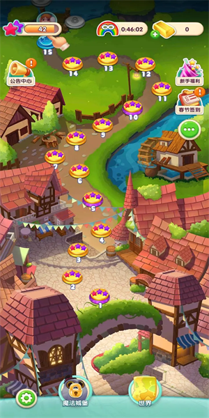 1、三个颜色相同的糖果连在一起就可以收集,这就是魔法的力量,每个关卡都有收集的目标,完成目标就可通关下一个关卡